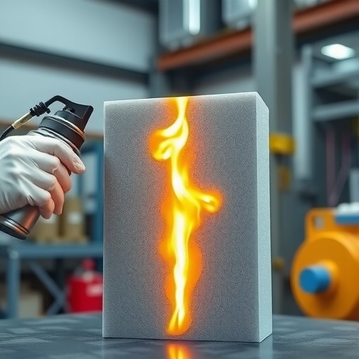 喷涂聚脲弹性体技术是国外近十年来,继高固体份涂料、水性涂料、辐射固化涂料、粉末涂料等低(无)污染涂装技术之后,为适应环保需求而研制、开发的一种新型无溶剂、无污染的快速固化施工技术。但随着人类安全环保意识的增强,许多国家对建筑、交通等领域对阻燃性能要求越来越高,不同场合的阻燃标准要求不同。喷涂聚脲弹性体本身是一种易燃的高聚物,对其进行阻燃性能改进成为必然。传统的方法是在组份中加入固体阻燃剂,导致体系粘度增加,反应速度减慢,影响施工和力学性能。