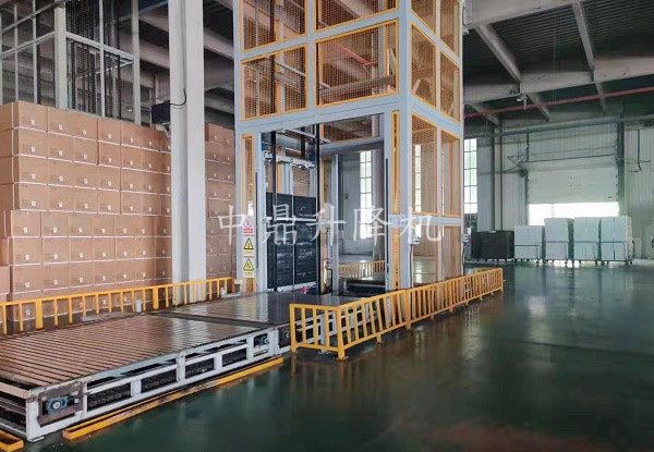 连续式垂直提升机以“连续输送”为核心设计理念,采用链条或皮带传动系统,搭配特制的托盘、料斗或夹持装置,能实现货物在垂直方向上的不间断运输。它无需像传统电梯那样逐次启停等待,从底层到顶层的输送过程中,可同步完成货物的接收与释放,尤其适配箱装、袋装、瓶装等规则形状货物,单小时输送量可达数百甚至数千件,大幅超越间歇式提升设备的效率。