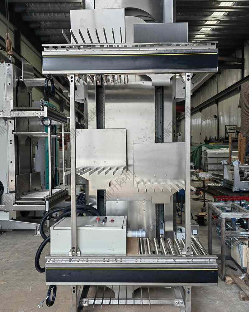 在洁净标准严格的食品、药品及精密电子制造环境中,叉臂式提升机亦以其可靠表现赢得了信任。通过采用不锈钢材质、密闭式设计以及易清洁的平滑表面,它能轻松满足GMP或ISO洁净等级要求。无论是将灌装后的瓶罐平稳送入高温灭菌隧道前的提升段,还是将晶圆盒在不同净化级别的生产层间进行安全转运,其稳定而洁净的运行特性都成为保障产品质量不可或缺的一环。