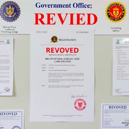 一、眼力健(杭州)制药有限公司的2个产品:隐形眼镜多功能护理液,注册证编号:国械注准20163160810;双氧水隐形眼镜消毒液,注册证编号:国械注准20143161869。